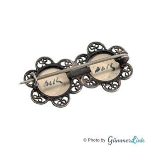 VTG Double Blue Windmill Delft Porcelain Filigree Flower Sterling Silver Brooch