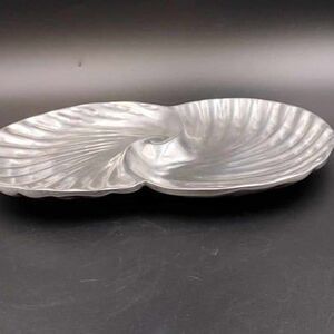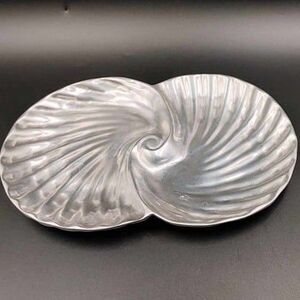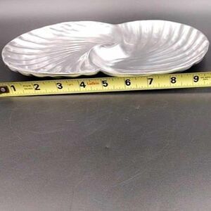 VTG Double Seashell Tray Dish Ocean Beach Hollywood Regency Mexico Pewter Silver