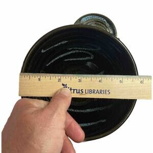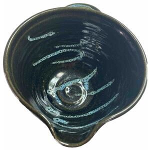 VTG Dough Bowl Studio Pottery Batter Spout Black Blue Signed Boho Whimsygoth 70s