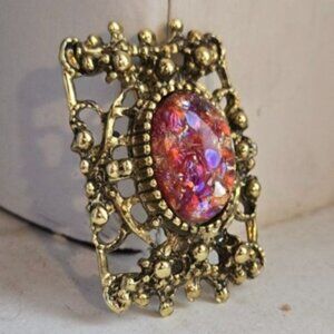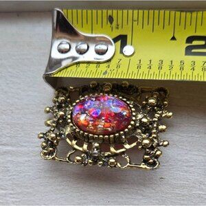 VTG Dragons breath fiery pink red Filagree glass cabochon brooch jelly belly