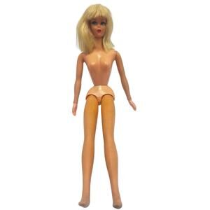 The product is a vintage Barbie doll with blonde hair, rooted lashes, and the ability to twist and turn at the waist and wrists. Manufactured in 1968 by Mattel, this fashion doll has a light complexion and blue eyes. This original Barbie doll from the 1960s is a sought-after collectible for collectors of vintage dolls and Barbie enthusiasts. With its straight hair, girl doll gender, and iconic design, this Barbie is a timeless piece that captures the essence of the era it was manufactured in.