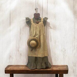 VTG Dress Pinafore Wall Hanging W/Hat Cottagecore Country Green Gingham