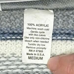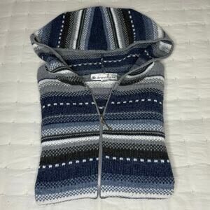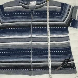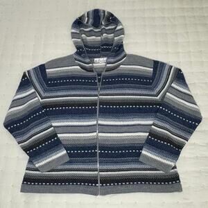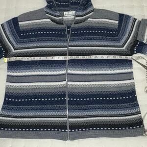 VTG Dressbarn Fair Isle Full Zip Hoodie Sweater Women's M Blue Gray White