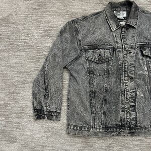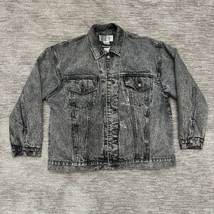 VTG Drummer Boy Jacket Mens XL Denim Black Gray Acid Wash Sherpa Lined 90s 80s