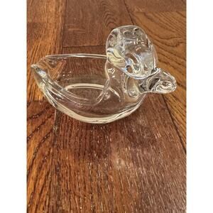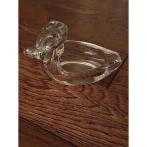 VTG Duck Ashtray Cigar Pipe Rest Candy Dish Heavy Clear Glass Figure Collectible