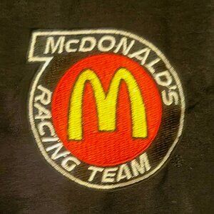 Vintage Dunbrooke Made in USA jacket featuring the McDonald's racing team logo and "Michel Rodgers" embroidered on the front.