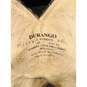 These Durango women's cowboy boots blend classic style with durability, featuring a leather upper and lining. The intricate stitching adds a touch of elegance to any outfit. The boots are in good condition, providing comfort and style for any western enthusiast.