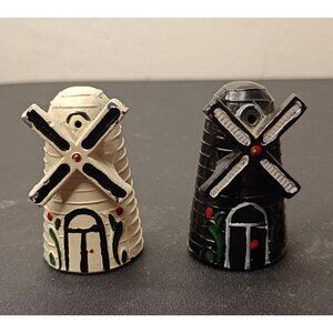 VTG Dutch Windmill Salt & Pepper Shakers Souvenir Of Caney Kansas Hand-Painted Collectibles