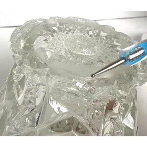 This sugar bowl adds charm to any table setting with its pressed glass and intricate starburst patterns. Ideal for serving sugar or small treats.