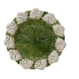 VTG EASTER MAJOLICA RABBITS IN GRASS POTTERY 10 inch PLATE PLATTER HAND PAINTED