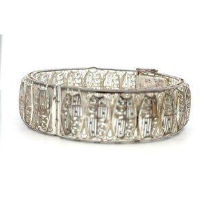 VTG EB Germany Sterling Silver 7 ½" Filigree Hinged Bangle Bracelet! 130
