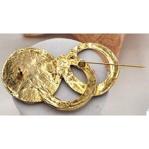 VTG ECD 90s Jewel Tones Circle Gold Tone Enamel Brooch Pin Abstract Detail Fall