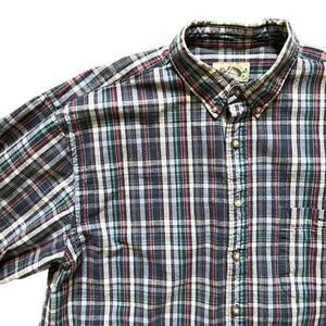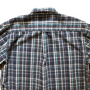 EDDIE BAUER VINTAGE Button Down Plaid Shirt in Navy Blue, Red, Green & White