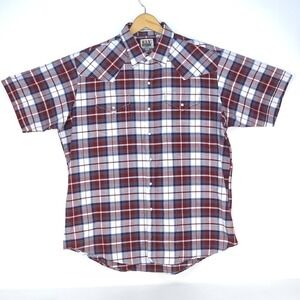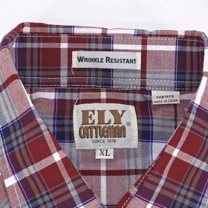 ELY Cattleman Plaid Shirt Men's XL Red Western Cowboy Pearl Snap Wrinkle Resist