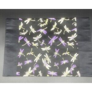 VTG EMPEROR SILK Dragonfly/Firefly Black W/ Purple & Green Placemats Set Of 4