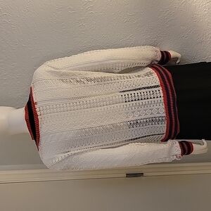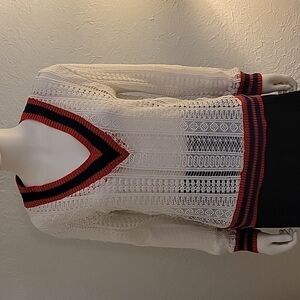 VTG ENDLESS ROSE Lace Knit Trim V-Neck Preppy Varsity Peekaboo Beach Sweater