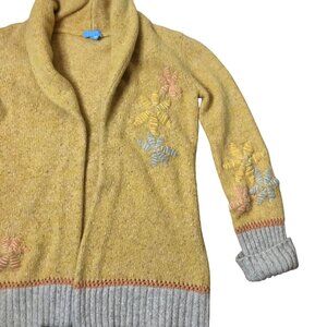 Escada sport cardigan, wool mohair sweater, mustard knit jacket, embroidered cardigan, quiet luxury knitwear, boho fall layer, designer hooded cardigan, artisanal knit coat, lagenlook sweater, slouchy shawl collar knit