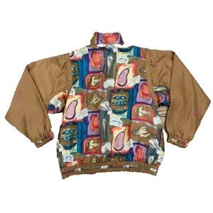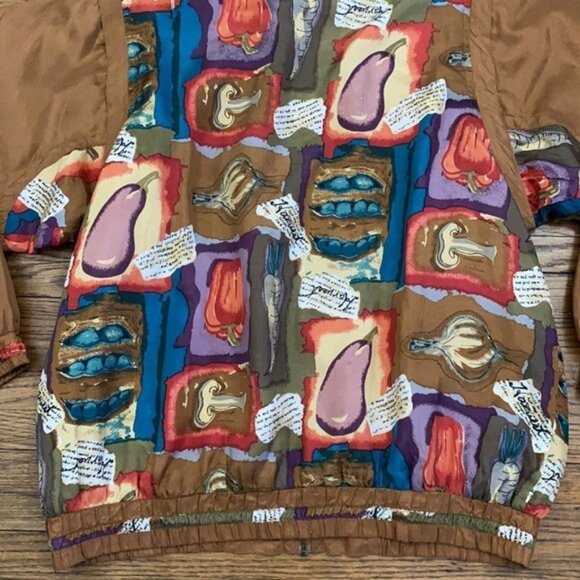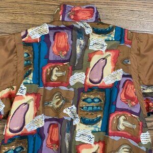 VTG EVR Silk Bomber Jacket Women Small Novelty Print Multi Windbreaker Halloween