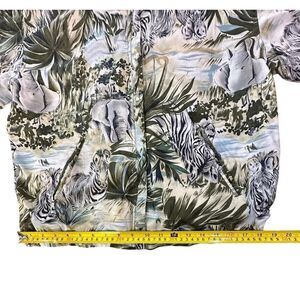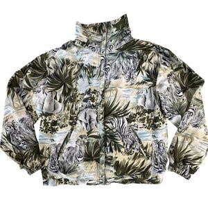Vintage EVR 90s Y2K Satin Jungle Zebra Elephant Safari Lightweight Full Zip Windbreaker Resortwear Jacket Women’s Size Petite Small