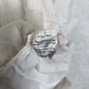 VTG EZZEWEAR Tunic Top Women's Sz M White Cotton Raw Edge Button Blouse Raglan