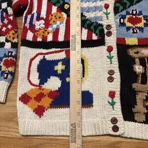 VTG Eagles Eye Americana Sweater Womens Large? Patriotic Flag Hand Knit Cardigan