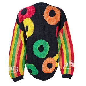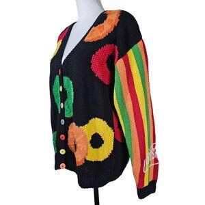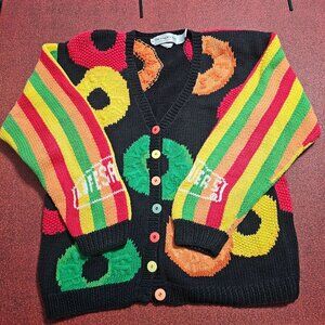 VTG Eagles Eye Lifesavers Rainbow Cardigan M Hand Knit Halloween Artsy Rainbow