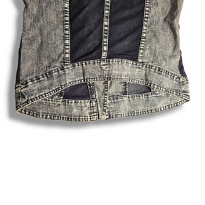 EUC VTG Eand Queen Distressed Mesh Panel Asymmetrical Jacket Sz. S [4-6] Gray Black Acid Wash