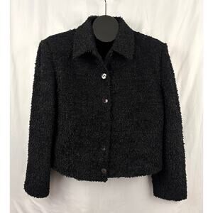 VTG Earl Rutenberg Black Cropped Textured Jacket Blazer Button LARGE Women's