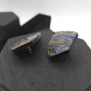 VTG Earrings Iridescent Shiny MOP Abalone Shell Pushback Pierced Retro Glam