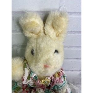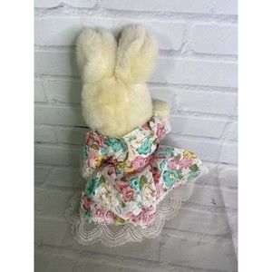 VTG Easter Pets Beige Yellow Bunny Rabbit Floral Dress Plush Stuffed Toy Animal