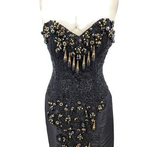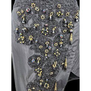 VTG Eavis & Brown London Silk Beaded Gown Womens M Asymmetric Strapless