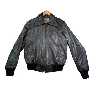 VTG Echtes Leder Rind-Nappa Jacket Men's 54 Black Leather Motorcycle Biker