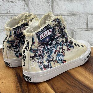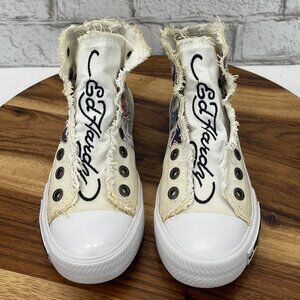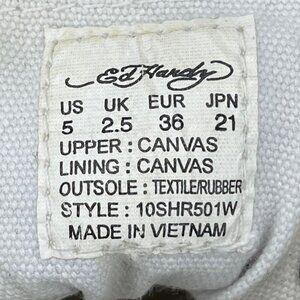 VTG Ed Hardy Canvas Laceless Skull Tiger Print Womens 5 High Top Slip On Shoes