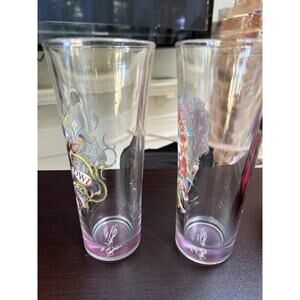 VTG Ed Hardy Christian Audigier Tattoo Skulls Print 6" Tall 14 oz Set of 2