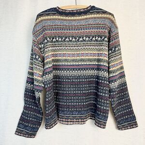 VTG Eddie Bauer 90s Fair Isle Cotton Sweater Pullover Crew Neck Nordic Large