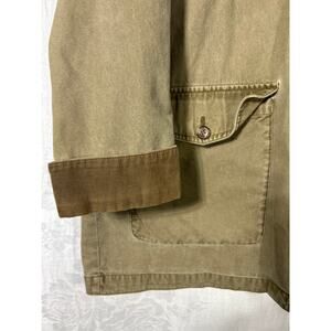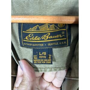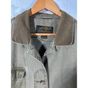 VTG Eddie Bauer Chore Coat Large PETITE Brown Patch Pockets Corduroy Collar Barn