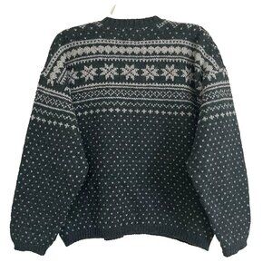 VTG Eddie Bauer Green Wool Cardigan Sweater Women's Large Birds Eye Fair Isle