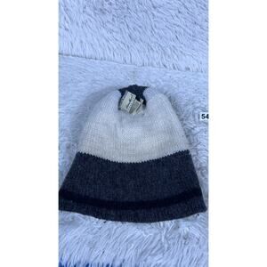 VTG Eddie Bauer Hat Beanie Mens OS Gray White Reversible Knit Winter Made USA