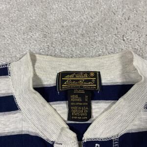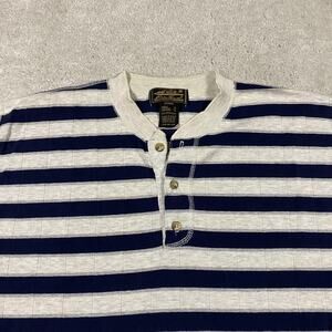 Vintage Eddie Bauer Henley Shirt Mens M Navy Striped Made USA 90s Heavyweight