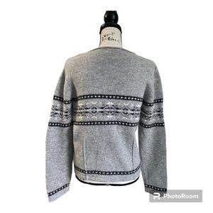 VTG Eddie Bauer Lambswool Sweater M Gray Black Fair Isle Nordic Fisherman Knit
