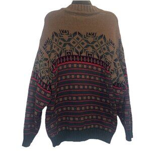 VTG Eddie Bauer Men’s Colorful Nordic Heavy Knit Mock Neck Ski Sweater Sz L