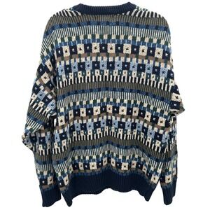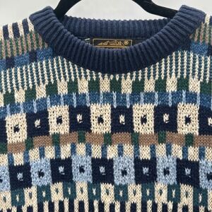 VTG Eddie Bauer Mens Geometric Pattern Crew Neck Sweater Cotton Made in USA XL