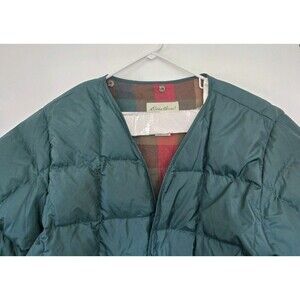 VTG Eddie Bauer Mens L Goose Down Puffer Jacket Green Snap Button Coat 90s Y2k