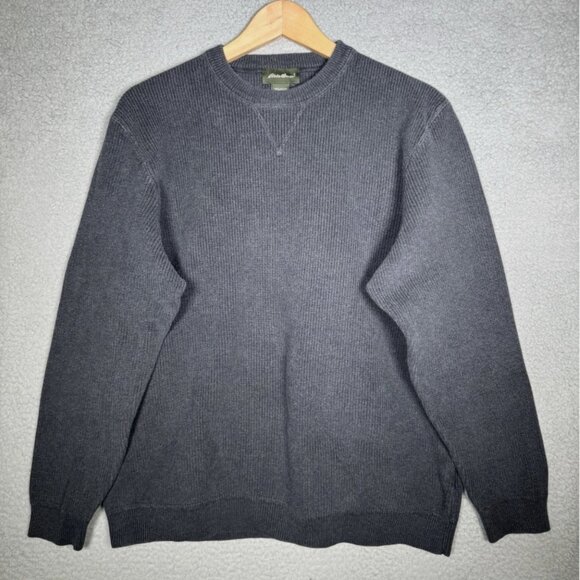 Vintage Eddie Bauer Men's L Sweater Waffle Knit Crewneck Pullover Gray Cotton