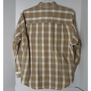 VTG Eddie Bauer Men’s M Button Front Shirt Beige Brown Tan Plaid Long Sleeve EUC