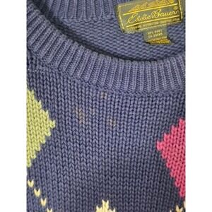 Keywords: Eddie Bauer, argyle sweater, mens knitwear, pullover, long sleeve, classic style, preppy, casual, fall fashion, winter wear, layered look, diamond pattern, comfortable