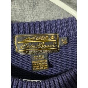 VTG Eddie Bauer Mens Navy Blue Argyle Knit Sweater Pullover Long Sleeve L Preppy