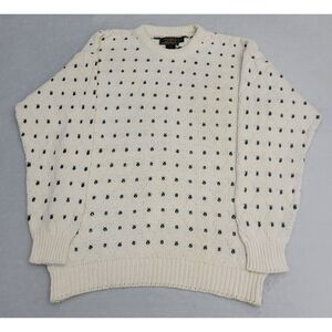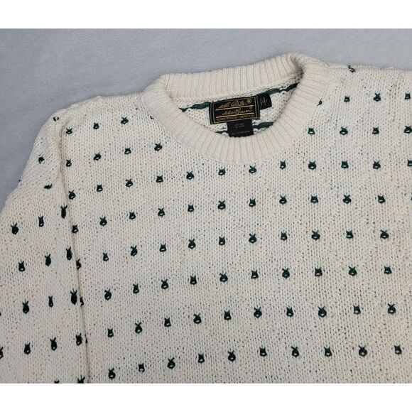 VTG Eddie Bauer Mens Outdoor Outfitter Cotton Knit Sweater M Cream Green USA