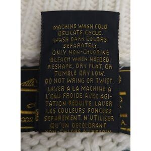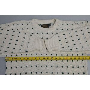 For sale is this VTG Eddie Bauer Mens Outdoor Outfitter Cotton Knit Sweater M Cream Green Made in USA Pre-Owned. The sweater features small areas of loose stitching; however, it remains fully wearable and structurally intact, with time-worn appeal. Please review all photos carefully, as they are an important part of the description and accurately show item's condition. Comes from a Smoke-Free Shop.