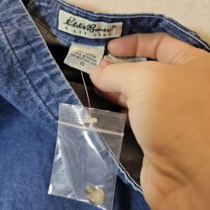 VTG Eddie Bauer Pencil Skirt Denim Jean Size 10 Modest Side Button Slit Flat